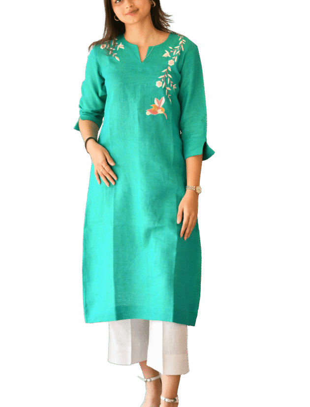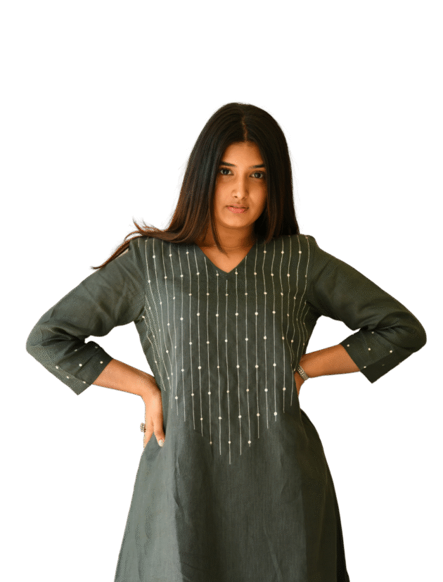 Green linen kurti
